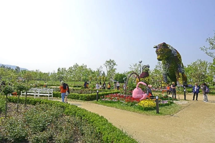 순천만을 보호하기 위하여 조성한 순천만국가정원은 순천 도사동 일대 정원부지 112만㎡(34만 평)에는 나무 505종 79만 주와 꽃 113종 315만 본이 식재됐다. 튤립과 철쭉 등이 꽃망울을 터뜨려 장관을 이루고 있다. 나눔의 숲 주변 3만㎡는 유채꽃 단지로 조성했는데, 5월 중순 일제히 만개해 ''노란 물결''을 이룰 예정이다. (자료출처 : 대한민국 구석구석 - korean.visitkorea.or.kr)
